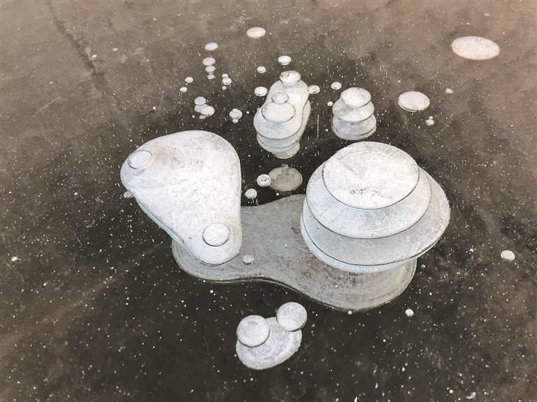 漠河冰泡湖位于漠河市观音山景区,由湖底植物释放的沼气在上升过程中因极寒导致冰封过快,被“锁”在冰层之中而形成。洁白的气泡分布在冰层之中,形成惟妙惟肖的冰泡奇观。