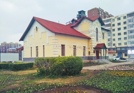 平移保护的历史建筑之一。采用国内首次冰轨平移技术,并于2013年1月17日10时位移成功及2月4日最后就位。平移冰面4000多平方米,距离240米,途中90度旋转。一座具有110年历史的俄式小白楼(老站长室),“五花大绑”地慷慨“让位”给新建的高铁“安达站”了。