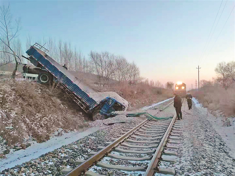 12月初,本报记者采访了解到这样一件惊险的感人事件。12月3日15时,鹤岗市公安局巡特警支队巡防大队的民警周鹤,驾车途经红旗林场检查站附近时,被人拦住车辆,称前方不远铁路处发生交通事故,需要帮助。周鹤立即下车赶到事故现场看到,一辆满载沙石的货车撞翻护栏,冲出公路,驾驶室变形,周鹤将满脸是血的驾驶员扶到车外等待救援。而此时,更危险的情况发生了。事故现场位于正在使用的国铁上,沿途铁轨已经被车内倾覆的沙石掩盖,而此时一辆火车正鸣笛驶来,如不及时停止,将发生脱轨事故。周鹤不顾危险,从几米高的路基跳下,迎着火车沿铁路线跑了百余米,不断挥手提示火车驾驶员停车。在火车距离自己仅有几米的情况下,周鹤才爬上路边的斜坡。火车成功制动时,仅与事故现场相距50米。