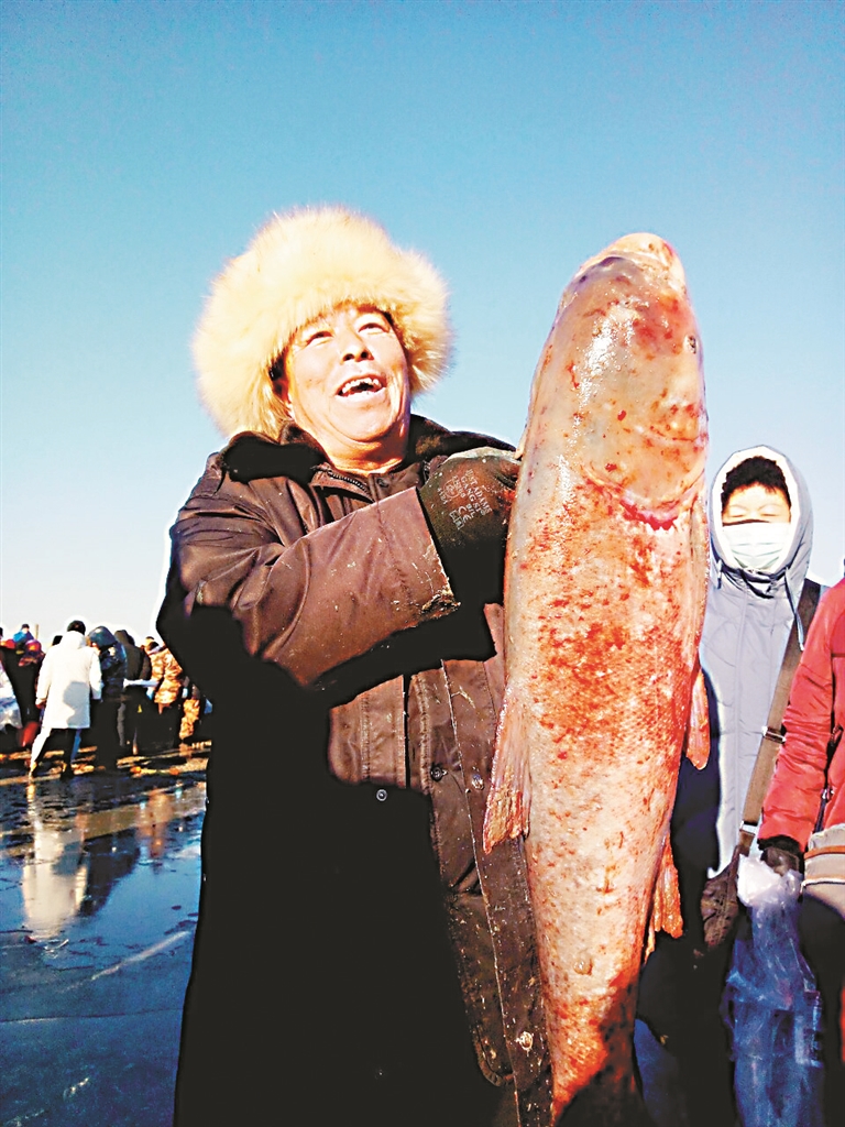当天上午,凛冽北风中,银白色的龙祥湖冰面一眼望不到边。伴随着“鱼把头”号子声、20多名渔工的欢呼声,一大网活蹦乱跳的鲢鱼、鲤鱼、草鱼从冰水中拉出,在冰面上跃动翻腾,再现“冰湖腾鱼”盛景。