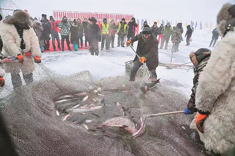 长岭湖冬捕冰钓旅游节。 本报记者 苏强摄