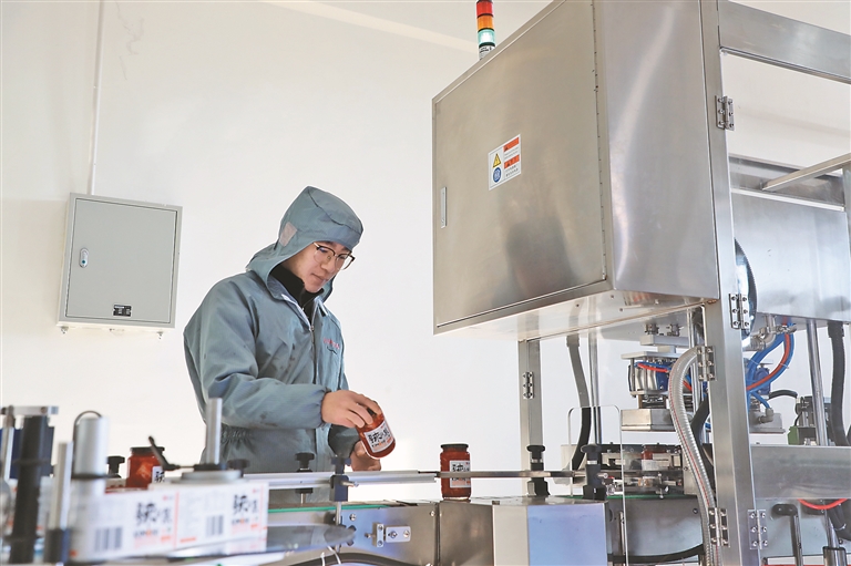 投资超千万元的兰西上百年食品科技有限公司落户林盛村,这是辣白菜生产线正在进行订单生产。 王杨威 本报记者 董新英摄