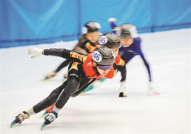 哈尔滨市速滑运动员参加全国短道速滑青少年比赛。