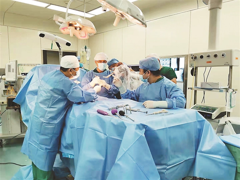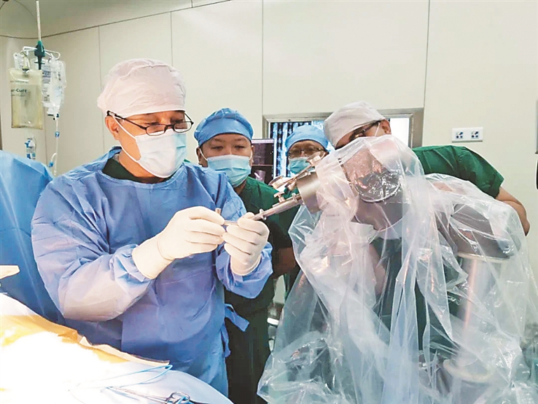 甄鑫刚介绍说,目前,该院应用机器人辅助手术开展最多的是脊柱和骨盆手术。他举例说,原本骨盆骨折手术创伤大、出血量多、手术时间长,但是机器人辅助手术前期做好角度规划、验证等工作,医生在手术台上操作几分钟即可完成。如不合并其他疾病,病人手术2~3天后即可恢复出院。“机器人就好比无人机,找到、定位,经过医生规划确认,医生可以精准置入内植物。”甄鑫刚比喻说。