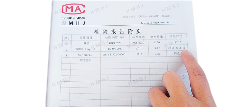 刘先生介绍,今年供暖没几天,家里的一组暖气片就开始滴答滴答漏水。刚开始不知道什么原因,给售后打了电话,因为家里的暖气片使用刚刚两年左右,都在保质期,所以厂家免费给更换了。但没过多久,又有一组暖气片漏水了,接下来的一个多月时间里,先后有5组暖气片漏水,一共更换了7组。刘先生说,帽儿山暖气片公司对暖气水做了检测,化验报告显示,他家的暖气水里溶解氧含量严重超标,暖气片漏水是发生了氧腐蚀。