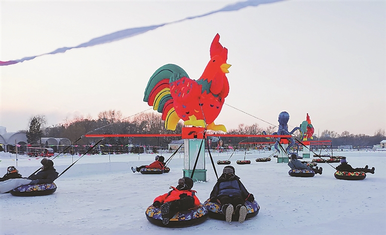 节日期间,哈尔滨市区主要景区迎来众多市民和游客。游人们赏冰戏雪,不亦乐乎。