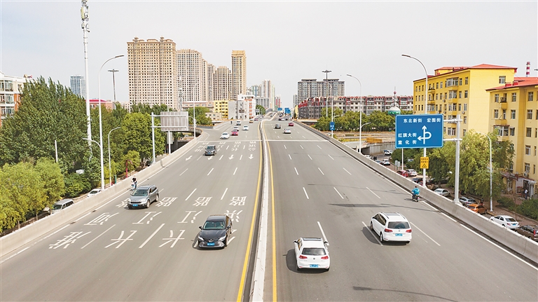宽阔的柏油路面、整齐的交通标线……这是记者在刚建成通车的三棵树跨线桥看到的场景,记者注意到,这里一改往日拥堵的现象。“以前这一带经常堵车,我们天天盼着新桥通车。现在大桥通车了,出行更加便利了,连附近房价也被带起来了!”家住新一头道街的居民王女士说。