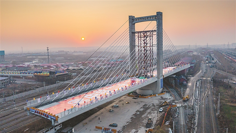 三棵树跨线桥通车解决哈东区域交通拥堵。