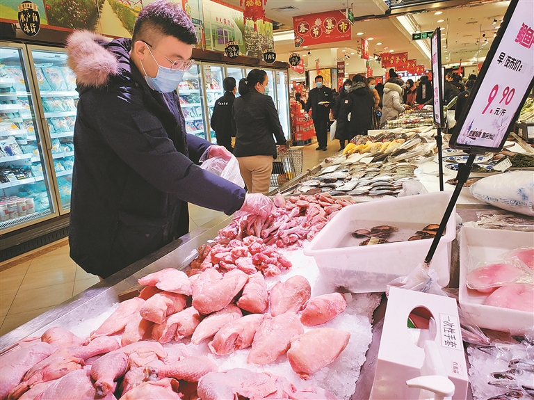 “我们根据以往销售量,来制定今年春节生鲜、肉灌制品等品类储备。在物价方面则严格按照政府部门的要求,严控加价率,让百姓吃上平价菜。”孙书才说。
