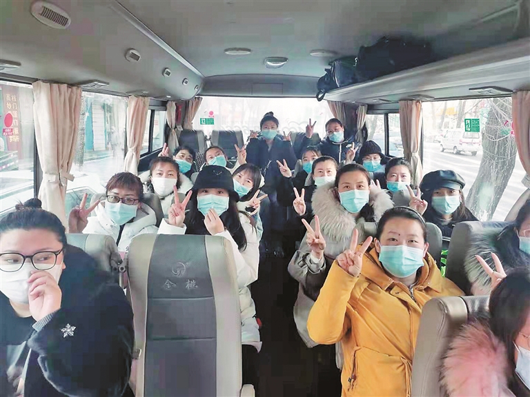 1月14日,由25名护士组成的核酸采样防疫队伍从虎林市出发,支援绥化青冈核酸检测工作。