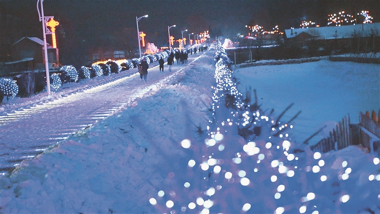 夜幕降临,宝泉林场尽显冬夜的神秘与浪漫。大红灯笼高高挂,七彩霓虹作嫁妆,那色彩斑斓的美,醉倒了八方游人。