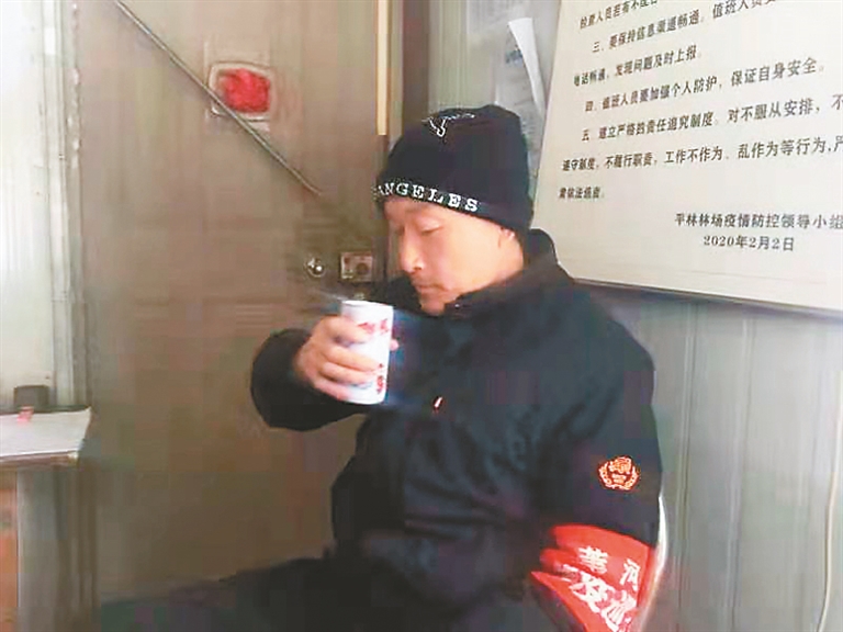 20日凌晨4点,北大荒集团牡丹江分公司裴珠路的防控卡口上,分公司机关党员干部正在对进入分公司的车辆和人员登记。