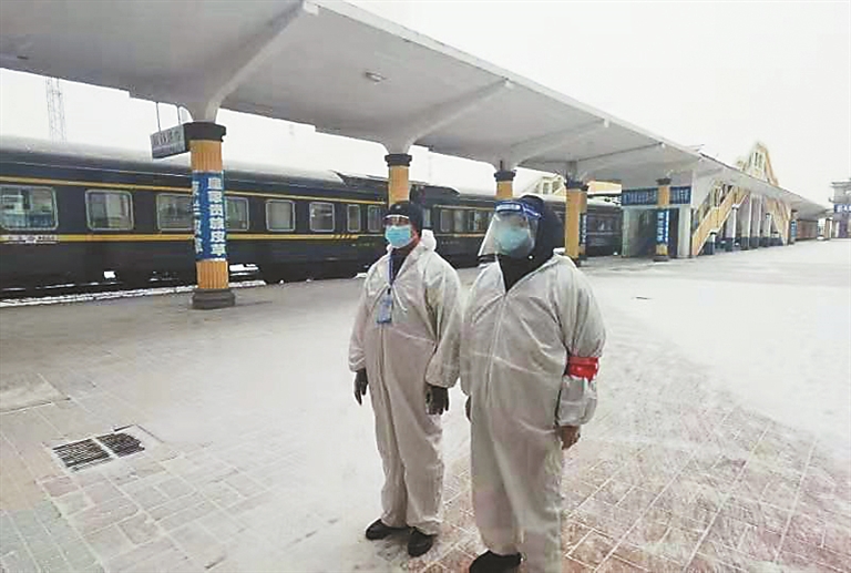 在加格达奇火车站,防疫人员24小时轮班坚守。