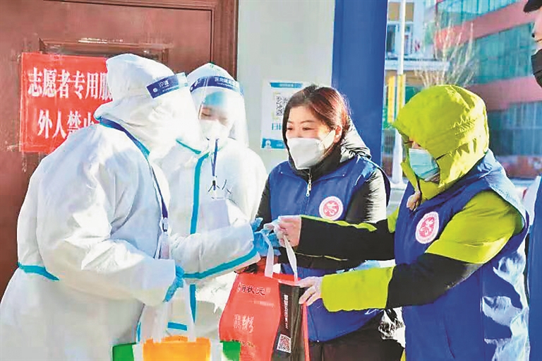 20日,拜泉县新时代文明实践中心组织50多名志愿者,一大早就把精心熬制好的1500多盒腊八粥,送到了全县149个疫情防控小区卡点、城区四门卡点、8个社区和环卫工人中间。