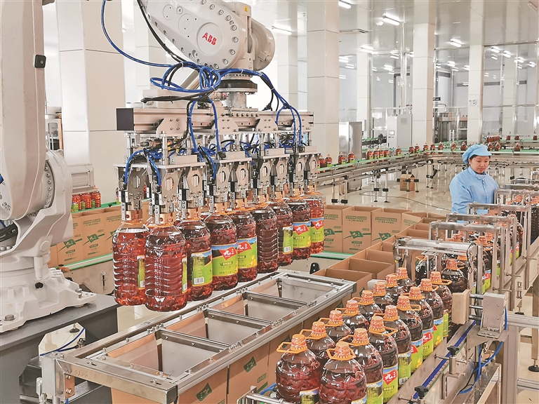 ①②九三集团“九三”豆油生产加工车间的先进流水线。