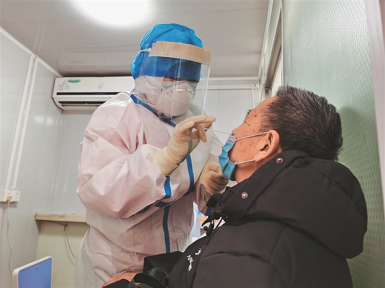 6时30分,核酸方舱采集室开舱,此时室外早已有预约检测的市民在等候了。“待会儿可能会有一种吃芥末被呛到的感觉,在鼻腔内停留几秒钟,我尽量轻柔一点,请您忍耐一下,别紧张,很快就好。”每次采样之前,赵晓琳都会轻声地温柔提醒。采样时,她神情专注,手上用劲小心翼翼,最大限度减少对患者鼻咽部的刺激。赵晓琳说:“面对‘全副武装’的护士,大家多少都会有些紧张甚至恐惧心理。其实我们护士自己每周也会被采样,时间久了慢慢摸索出了丰富的经验,多一些沟通,多一些人文关怀,采集过程就能更顺畅。”