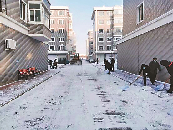 城镇管理处清雪保畅通。魏颖旭摄