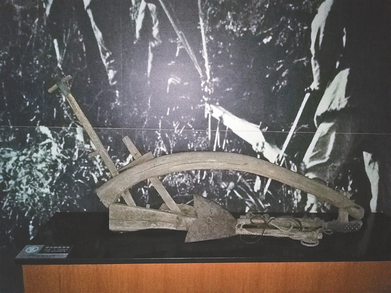 走进第二展厅,首先会看到一把古老的犁杖,可不要小看了这件陈旧的器物,当年,正是这把“犁”让拓荒者们在亘古荒原上拉开了惊天动地、载入史册的“第一犁”。