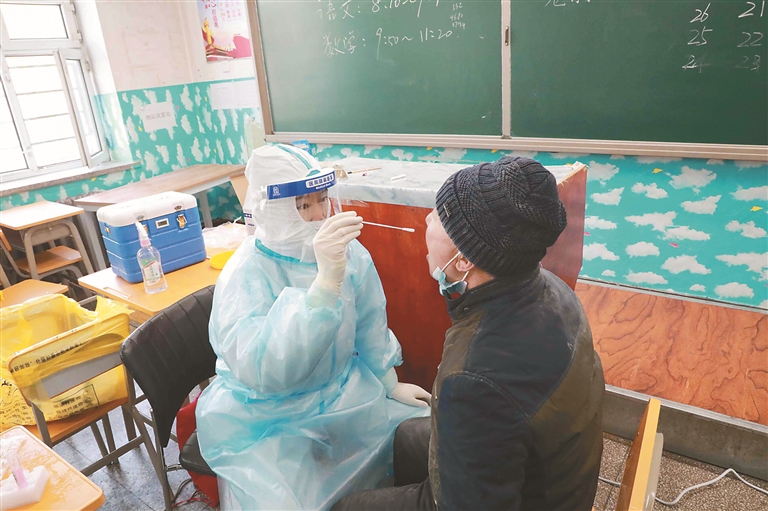 “张嘴、抬头、往前来。”记者在平房区全民核酸检测点见到陈彩凤时,她正在为居民采集核酸检测样本。声音温和、动作麻利,这是记者的第一印象。