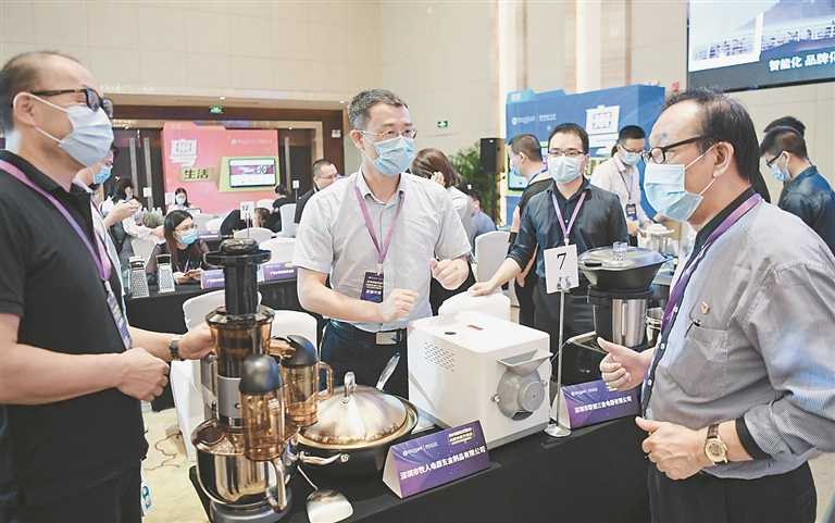 在第128届网上广交会的线下双循环贸易促进活动上,企业代表和采购代表洽谈业务。 新华社记者 邓华摄