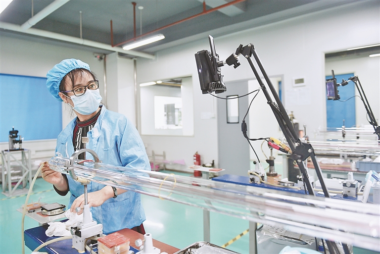 这是吉林省一家民营企业的工人在生产激光管。 新华社记者 林宏摄