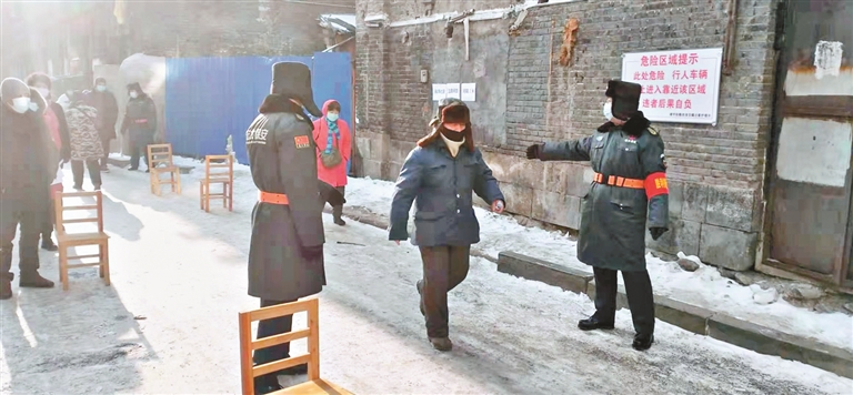 “请间隔一米排好队,拿好登记卡有序登记。”1月25日,在哈尔滨市道外区育民学校核酸检测点,哈尔滨宏大保安公司8名党员志愿者维持现场秩序,统一的着装、红色的袖标格外亮眼。1月24日、25日,哈尔滨宏大保安公司派出由22名专业安保人员组成的党员志愿者服务队奔赴道外区4个检测点位,连续两昼夜协助社区做好全民核酸检测工作。
