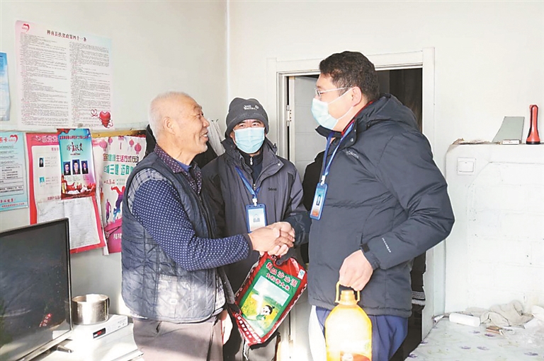 4日,农历小年,驻村工作队协调桦南县民政部门、孟家岗镇政府,为全村20户已脱贫户、五保户、幸福大院住户送来大米、面粉和豆油等生活物资。幸福大院住户张宝财说:“李书记每年都给我们送‘实惠’,一到我这屋就摸炕热不热,今年供暖的燃煤都是李书记给送来的。”