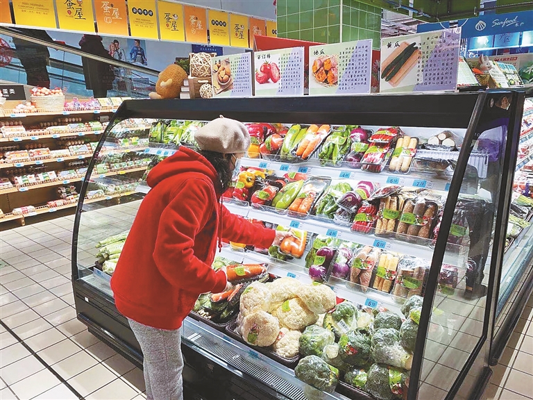 正在自助结账的陈先生告诉记者:“家就在超市附近,缺什么及时买就行了,也不用囤货。”超市工作人员介绍,针对春节前期的年货采购高潮,店内储备了大量民生商品,包括米面油肉蛋奶及蔬菜水果等。