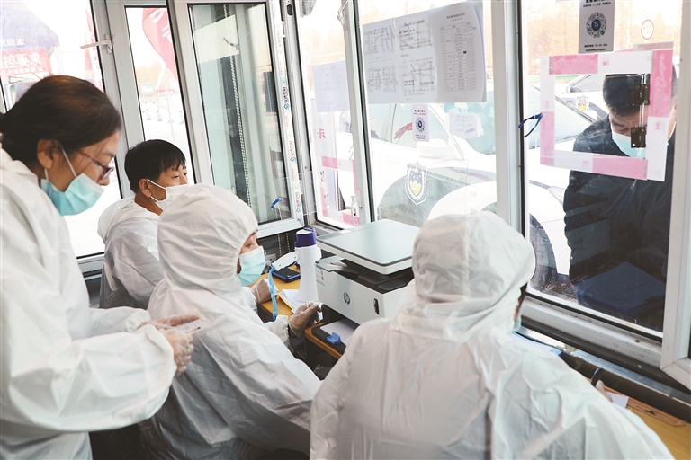 卡口工作人员进行信息登记。 李日东 本报记者 刘大泳摄