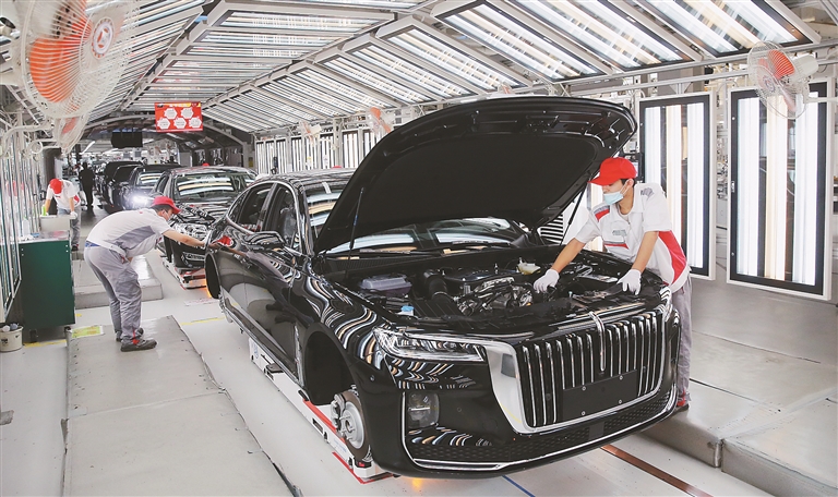 一汽红旗工厂新H总装车间生产线。 《吉林日报》记者石雷摄