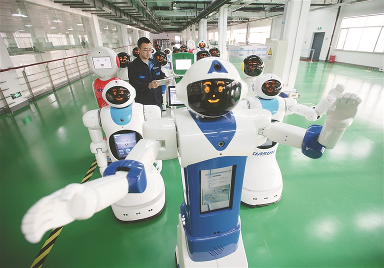 沈阳新松公司生产的松果系列人形服务型机器人。 《辽宁日报》记者 杨靖岫摄