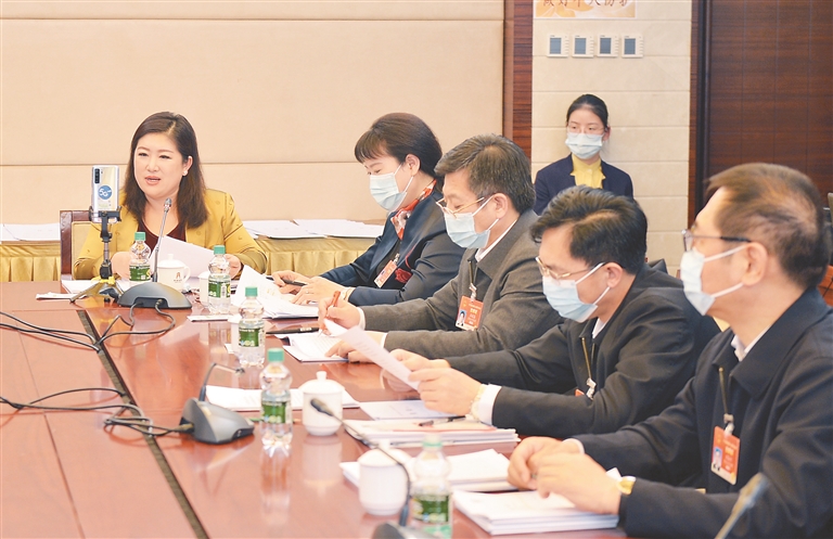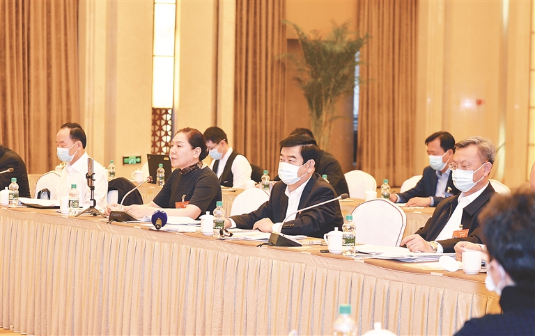 9日上午,出席十三届全国人大四次会议的黑龙江代表团举行小组会议,审议全国人大常委会工作报告。徐旭摄
