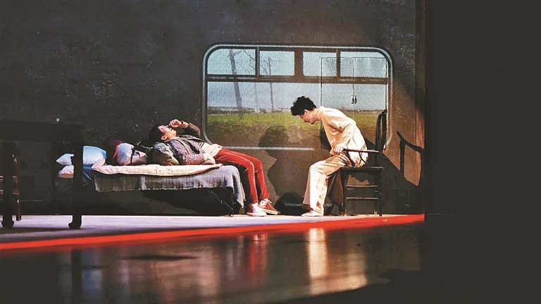 这种坚硬的叙事外观,可以清晰地分割叙事段落,让故事情节转换顺理成章,更为鲜明无误。但是,仅有质地还不足以让故事丰沛充盈起来,使之与观众达成共情。我们看到,在风筝、母亲、发烧等段落中,一些柔软的力量开始占主导地位。这便是兄弟、母子亲情的拓展。就像是水泥溜缝,无声无息却坚不可摧。突破鲁迅先生原作的象征手法,将日常亲情的生活流,引入戏剧舞台,是陆帕诠释鲁迅先生《狂人日记》的创新。这一点,陆帕对鲁迅先生的诠释非常到位,也使《狂人日记》在激越的调式中增加了柔性力量,延伸了《狂人日记》的思想内涵和复杂意蕴。