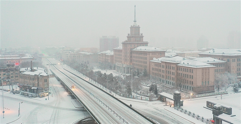 20日、21日,冰城哈尔滨降下春雪,给大街小巷披上了一层白衣,西大直街、哈尔滨建筑艺术博物馆、松花江畔等街路和景点,在白雪的映衬下,变得淡雅、清新。本报记者 张澍摄
