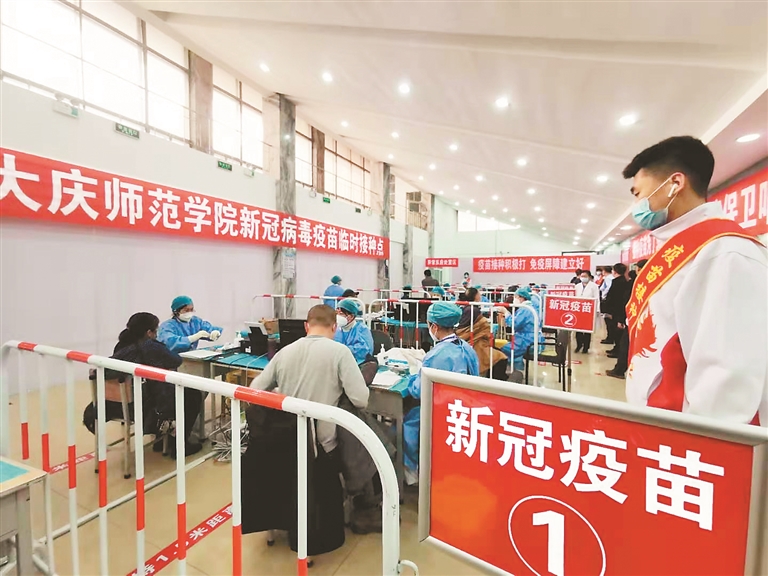 3月25日,大庆师范学院临时接种点启用,这也是大庆市疫苗接种服务首次进校园,记者进行了探访。