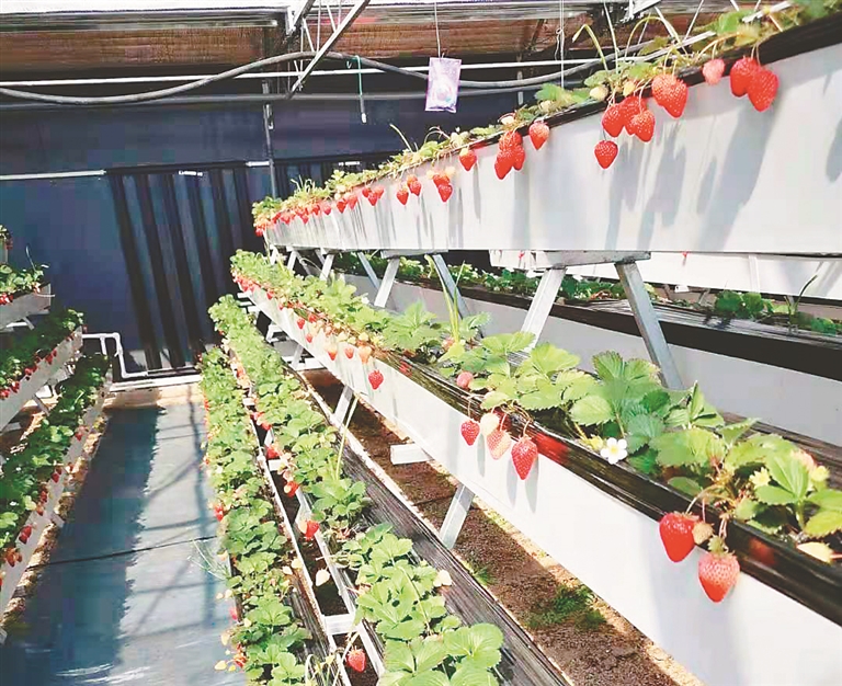 众恒科技研发的“6H日光温室”内,草莓长势良好。本报记者 孙思琪摄