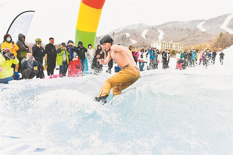 开幕式结束后,参加活动的发烧友们乘缆车前往三锅盔山顶参加光猪大滑行活动。此次光猪节由亚布力滑雪旅游度假区主办,亚布力阳光度假村承办。在长达146天的超长雪季后,亚布力阳光度假村将于3月29日正式封板。图片由亚布力阳光度假村提供