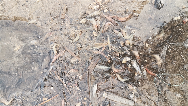 有读者反映,哈尔滨市松花江铁路桥北侧东面的江汊子岸边,有一处很隐蔽的排水口,周边出现了许多死鱼死虾,他怀疑是排出的水质有问题。