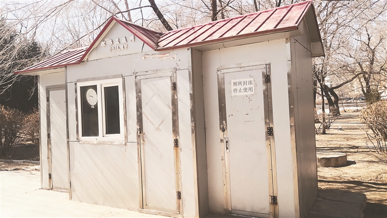 有读者反映,齐齐哈尔市龙沙公园里,多个公厕冬季由于温度太低而无法使用,现在仍处于关闭状态,逛公园的市民需要走出很远的距离才能方便。近日,记者从劳动路一侧入口进入公园,走出几百米,过了一座小桥看到前方有一处公厕,走到近处发现,公厕门紧锁,上面贴着的白纸上写着“厕所封冻,停止使用”。再往前走出几百米距离,发现了另一处稍大一些的公厕,依旧是“铁将军”把门。