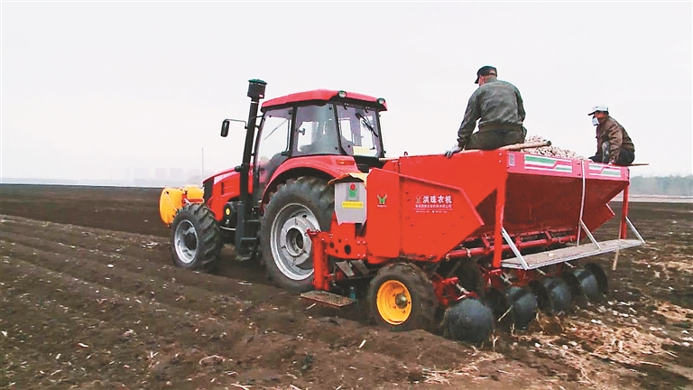大型机械播种,全面提升效率。张迪 本报记者 姚建平摄
