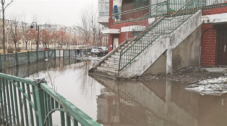 近日,在哈尔滨市道里区何家沟畔盛美晨家园小区的一栋居民楼下,出现近百平方米的积水,积水周边散落大量垃圾,环境脏乱。记者看到,小区的一个出入口、沟畔公园的一个出入口都淹在了水中,行人需要绕行通过。