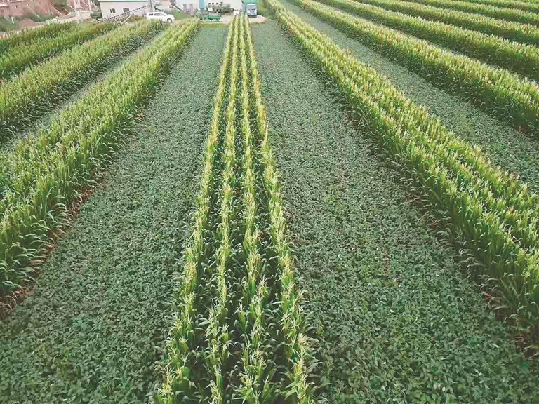 托管公司为追求高产而进行的玉米套种大豆实验。