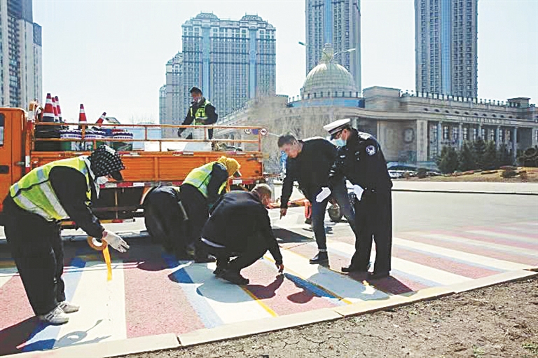据交警部门介绍,每年冬季哈市路面交通标线经过车流碾压、严寒风雪侵袭,特别是在冬季清雪设备对热熔交通标线的磨损等因素影响下,路面交通标线磨损较大,外加冻融期后路面灰尘积攒较厚,因此部分街道交通标线清晰度有所下降。“冻融期”后,哈市交警部门精准谋划,计划全年分三个阶段对全市1300余条街道复线施划,并预计在“五一”前,使主城区内主干街路交通标线焕然一新。