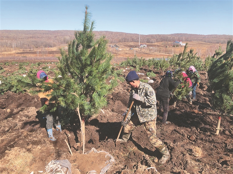 早春4月,小兴安岭的植树季还未开始,伊春森工铁力林业局公司去年从辽宁凤城引进的千余株嫁接红松却已经按照辽宁省的节气开始萌动。从4月2日开始,建设林场分公司职工们提前动手,将这一千多株具有示范效应的嫁接红松顶浆造林栽到地里。预计明年,这片树龄10年左右的红松将开始大面积结塔。公司希望林业局职工能够通过这片红松丰收结塔的示范效应,接受嫁接红松这项新事物,从而扩宽增收渠道。