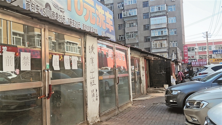 齐齐哈尔市龙沙小区29号楼居民楼下,也有一处大车棚,车棚长30余米,宽10多米,棚子东侧开了一家洗车行,西侧改造成暖库向外出租,中间开了一处废品回收站。车棚与居民楼之间只有几米的距离,居民出行受到了影响。3月22日,记者走到近处查看,一位在这里看护的男子上前询问是否想要租场地,记者称要租个100多平方米的库房。该男子说,没有这么大的,只有二三十平方米的。