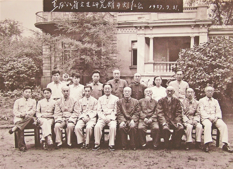 1957年7月31日黑龙江省文史研究馆建馆时,时任文史馆馆长宋云桐(前排右五),与有关领导及馆员合影。 (本版诗文书画作者均为省文史研究馆馆员)