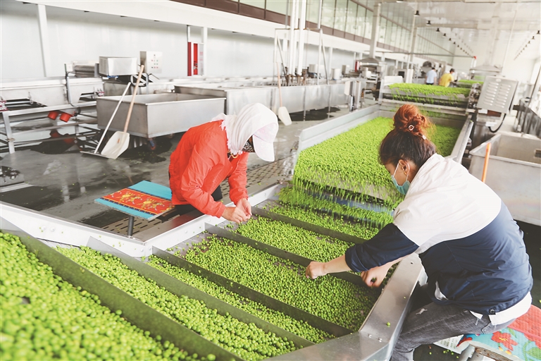 上图:天润公司的豌豆加工生产线。