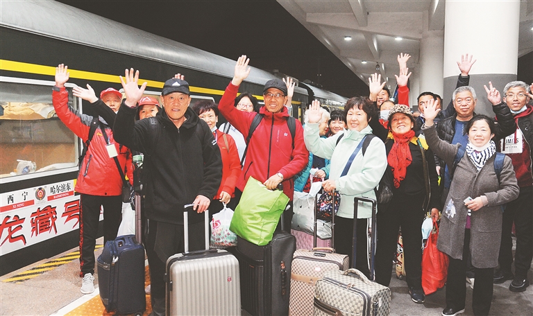 中国铁路哈尔滨局集团公司于4月8日和4月10日连发两趟“龙藏号”专列,千余名龙江游客乘着火车畅游西藏。哈尔滨国际铁道旅游发展集团副总经理李冬也与游客同吃同住,感受了多个“没想到”。