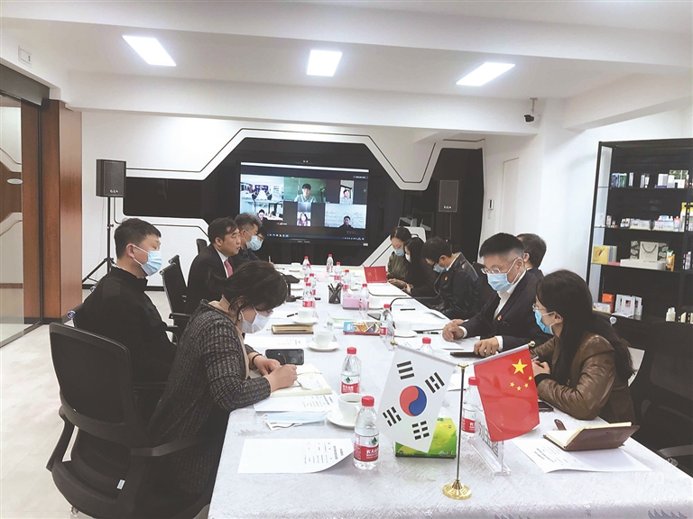 中韩连线共商中韩创新中心建设事宜。 本报记者薛婧 李爱民摄