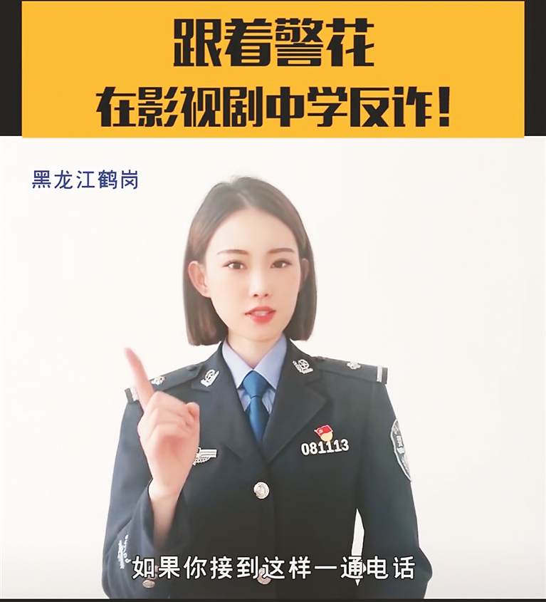 据鹤岗市公安局四级高级警长陈洪亮介绍,“警花说反诈”是鹤岗市公安局开设的反诈宣传平台。自2020年12月开播以来,累计播出系列反电诈小视频,小视频选取发生在百姓身边案例,从打击和防范电信诈骗角度,配以动画或者喜剧人物造型呈现,其语言简练,幽默风趣,图文并茂,通俗易懂。小视频通过微信公众号和抖音、快手等平台宣传推广,开播以来关注度极高,累计浏览量已经突破100万,10万+爆款反诈小视频已经达到6个,营造出浓厚的反诈宣传氛围,取得较好的教育警示效果。“警花说反诈”中的主播民警芦春荟因一个个精彩反电诈视频走红网络。